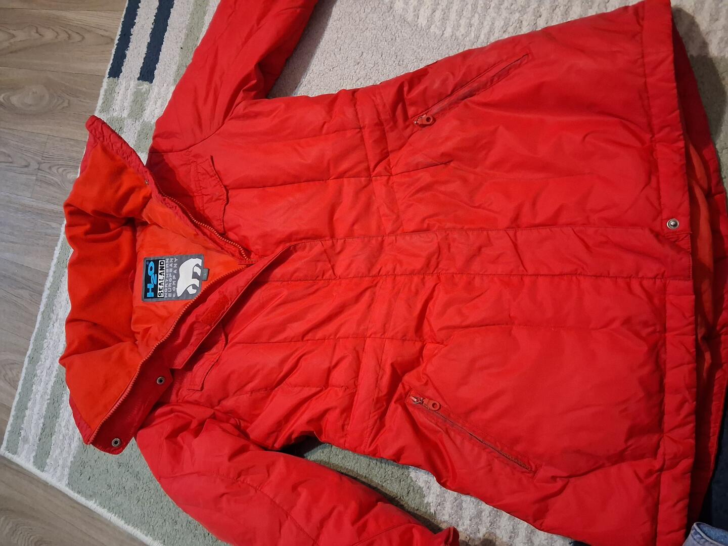 Sprzedam kurtke H2O rozmiar L. Wymiary: biust 106cm,dł.całkowita 78cm, dł.rękawa 62. Kolor czerwony(jest bardziej stonowany niż na zdjęciu-czerwień). Na wzost 165cm.