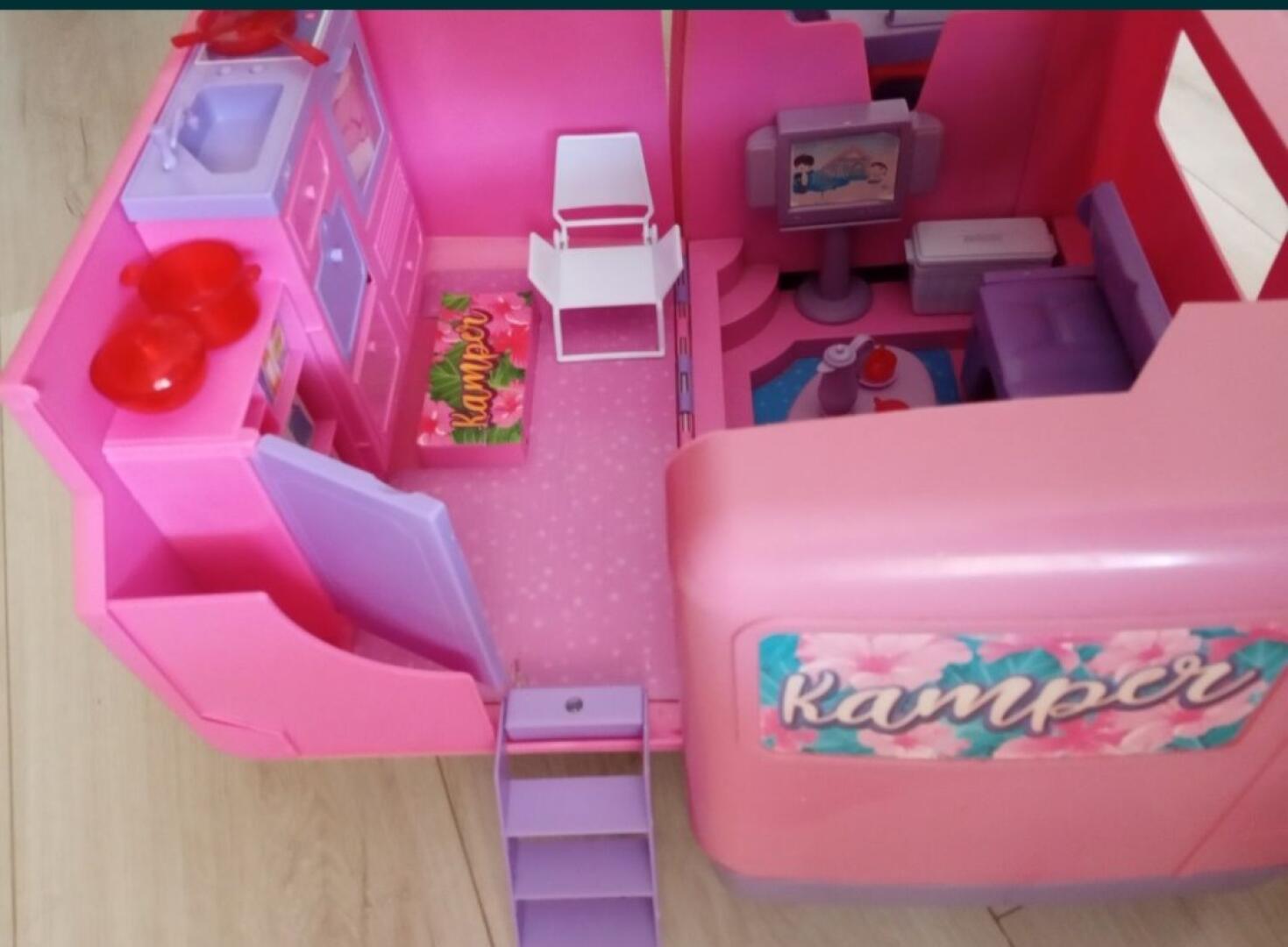 Kamper dla lalek barbie, rower i akcesoria ,duży samochód bus do kupienia w Grajewie