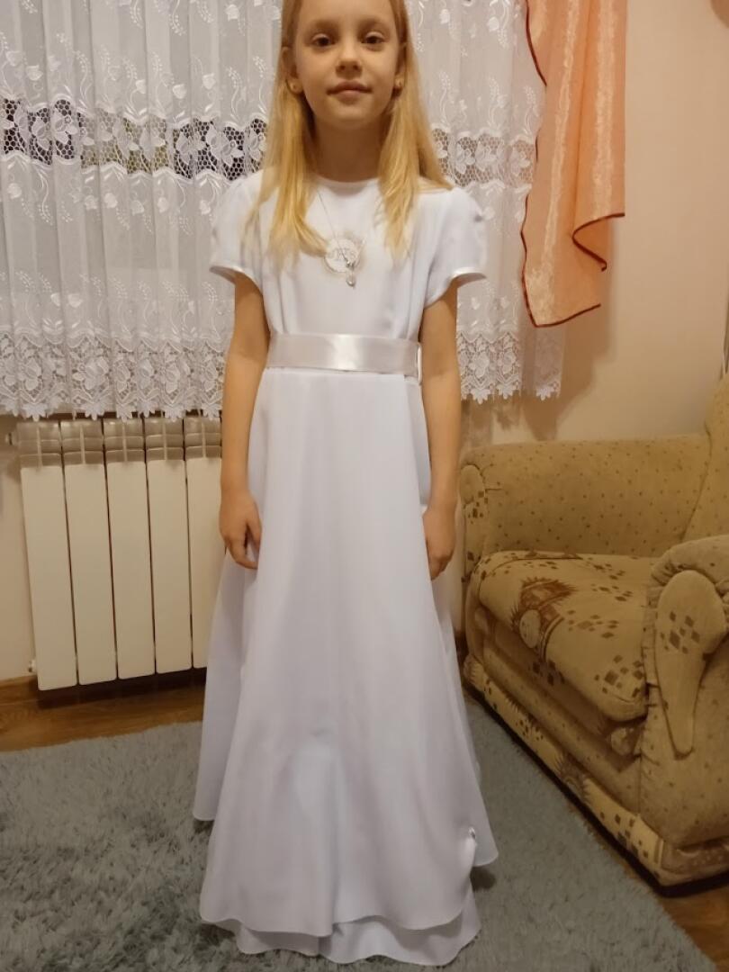 Sprzedam sukienkę komunijną. Stan bardzo dobry. W komplecie wianuszek, torebka i rękawiczki.