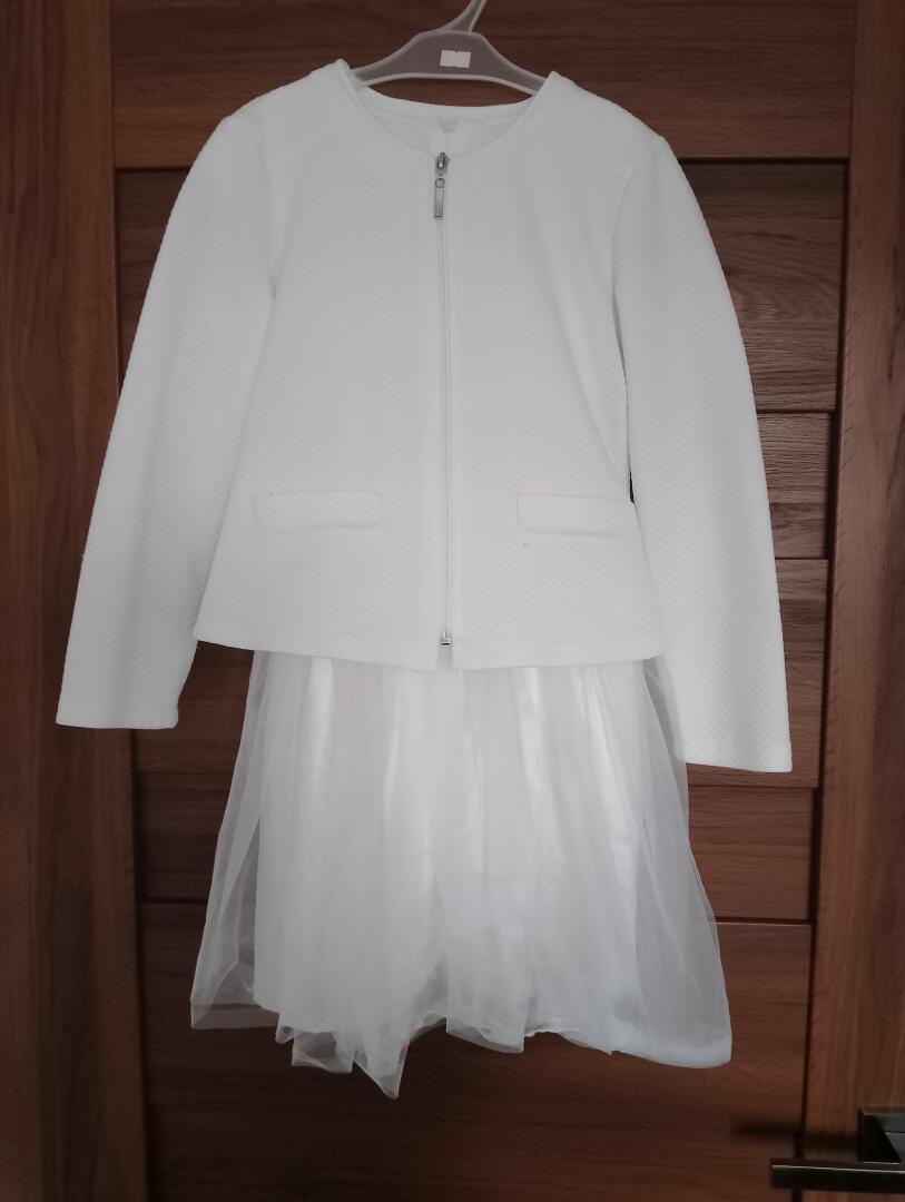 Sprzedam elegancką sukienkę dziewczęcą plus bolerko raz nałożoną na wesele w rozmiarze 7 - 9, ewentualnie 10 lat;