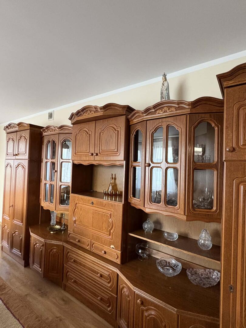 Sprzedam meblościankę widoczna na zdjęciu. Znajduje sie w niej szafa wiszaca podwojna, poki i czesc za szklem. Odbiór osobisty, okolice Jedwabnego. Cena do negocjacji